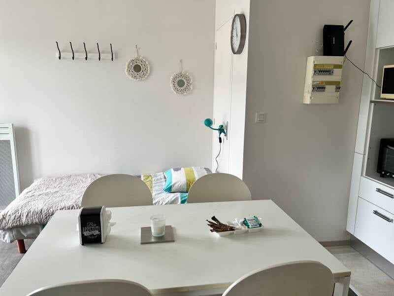 Nos studios comprennent une salle de douche wc et espace avec kitchenette équipée d'un four, d'un réfrigérateur et d'un micro-ondes de plaques électriques et tout le nécessaire pour cuisiner. Les lits sont faits pour votre arrivée et le linge de toilette fourni.